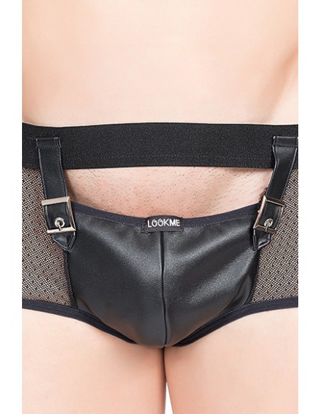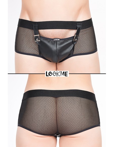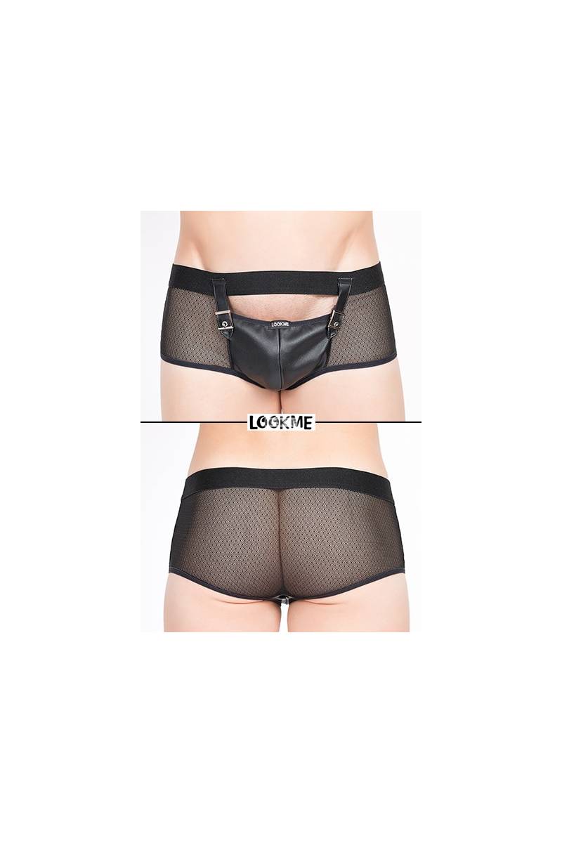 Avec sa belle coquille faux cuir idéalement conçue pour recevoir vos attributs virils tout en restant totalement accessibles, et la résille fantaisie douce et transparente qui laisse clairement voir le postérieur, ce boxer sexy masculin est un atout séduction de plus pour vos soirées hot.