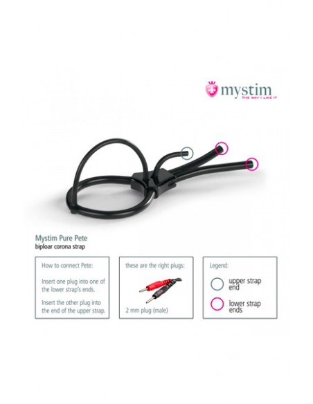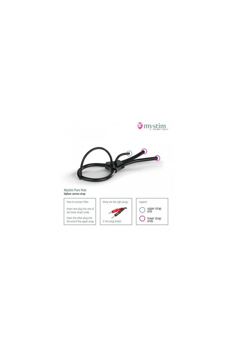 Pour le plus grand plaisir des amateurs d'électro stimulation, Pure Pete Corona Strap est un anneau en silicone conducteur qui enserre le gland et lui transmet des impulsions électriques.