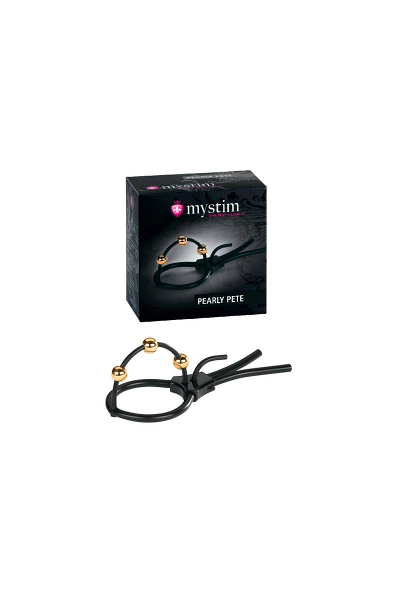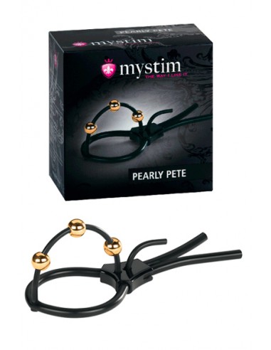 - 1 boucle Mystim "Pearly Pete" pour pénis avec 3 boules dorées