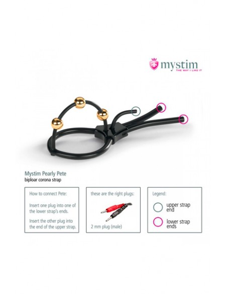 Accessoire incontournable pour tout amateur d'électro stimulation, Pearly Pete Corona Strap diffuse des impulsions électriques intenses sur le penis et le gland.