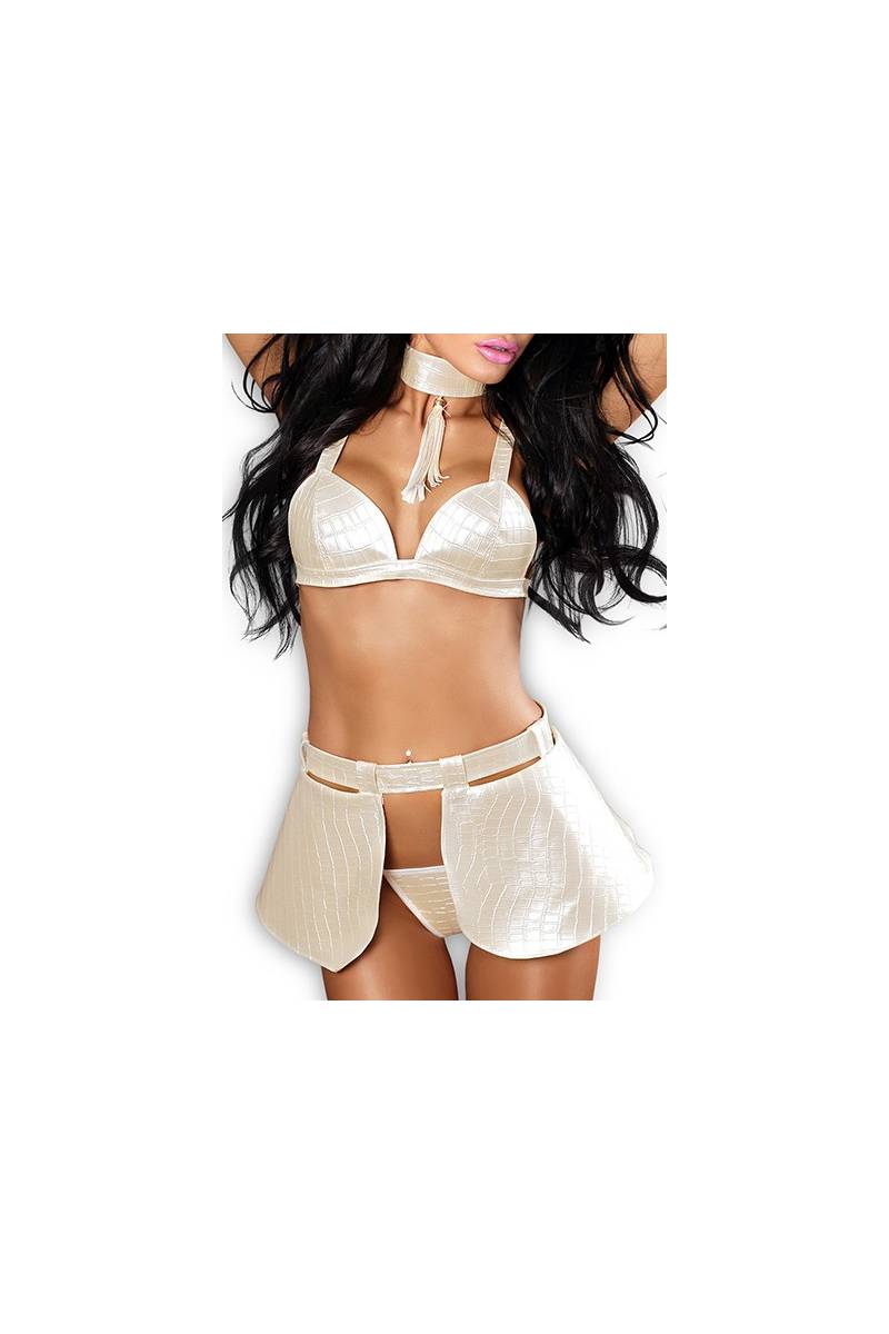 Faites-vous remarquer en soirée libertine avec cet ensemble ultra sexy en faux python d'une belle teinte nacrée.
