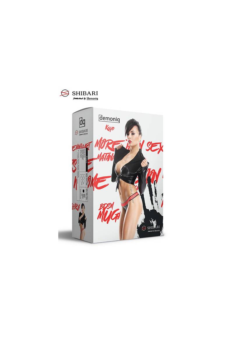 Véritable fantaisie sexy fetish, cet ensemble comporte un boléro à capuche qui exhibe le décolleté avec son noeud central très hot.