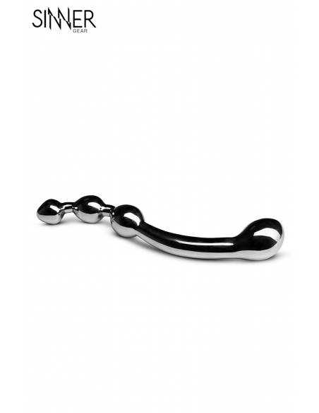 Que ce soit pour le plaisir anal ou le plaisir vaginal, le gode "Pleasure Wand" de Sinner Gear vous propose ses deux extrémités dédiées au plaisir des sens. Sextoy luxueux en acier inoxydable lisse poli à la main, il possède une partie centrale incurvée, une extrémité ronde et trois boules stimulantes à l'autre extrémité qui vous donneront une sensation délicieuse et intense par voie anale.