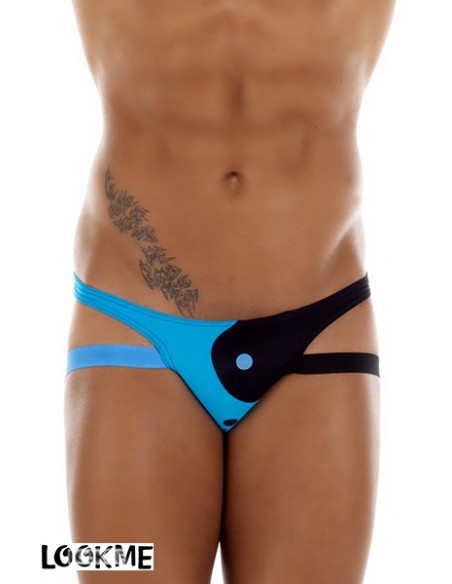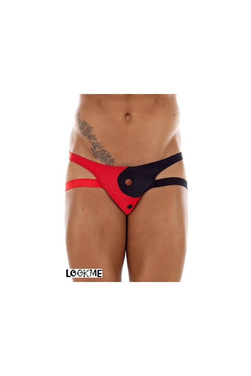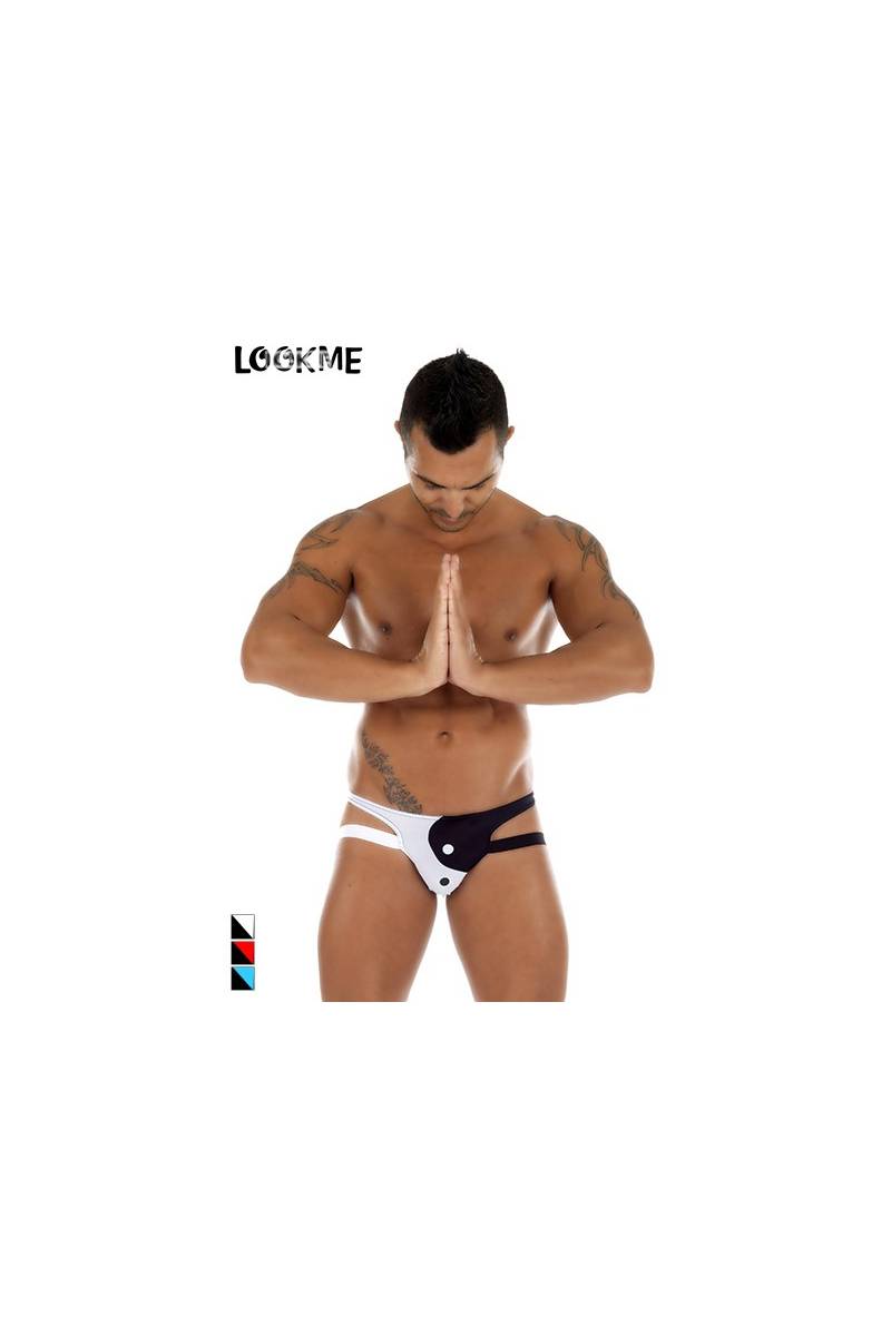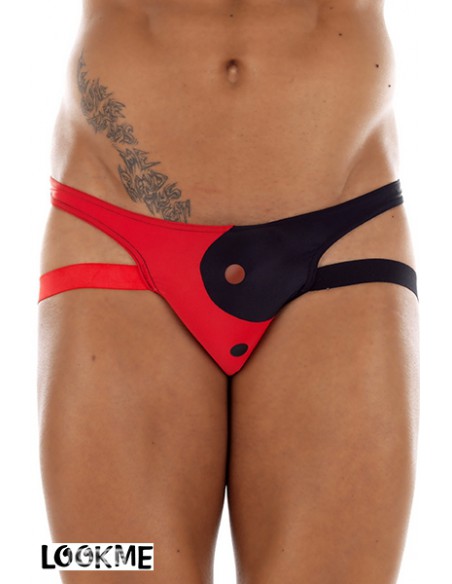 Lingerie masculine fantaisie par excellence, le Jock-Strap s'habille de yin et de yang avec ce motif à découpes bicolores.