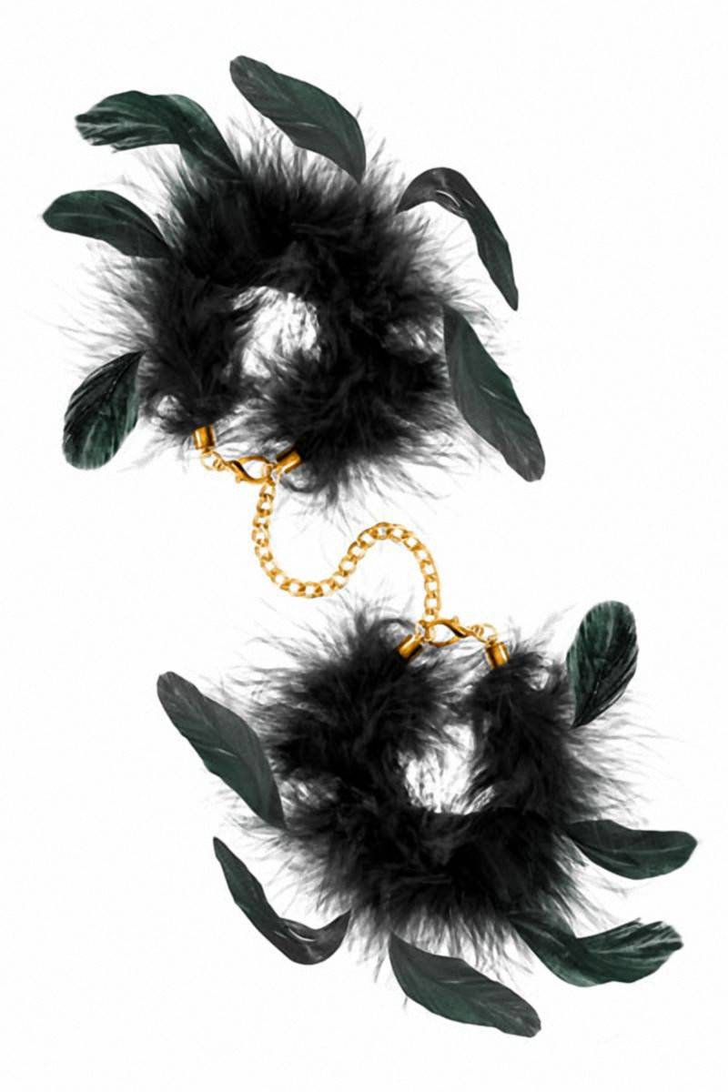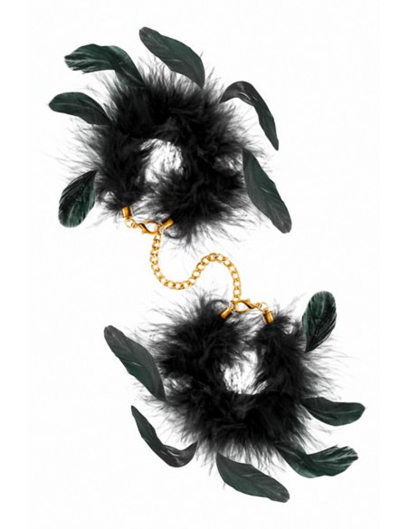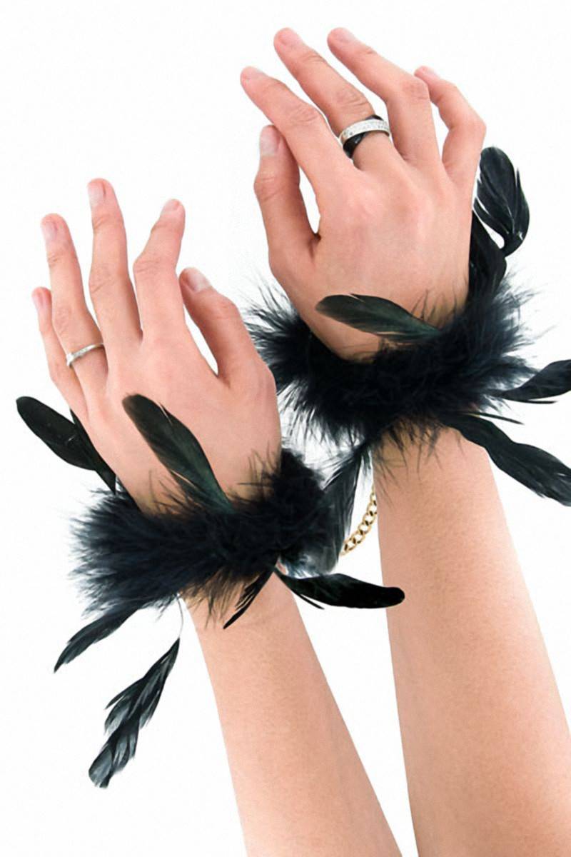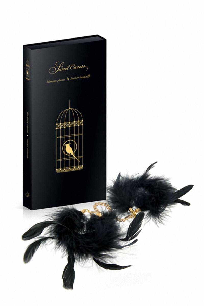 Pour vos jeux de contraintes érotiques et Fetish, la marque Sweet Caress propose une paire de luxueuses menottes au design très glamour, recouvertes de véritables duvet et plumes de dinde et de coq, avec une petite chaîne dorée reliant les menottes entre elles.