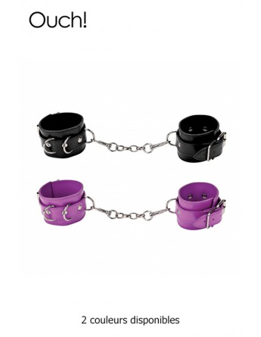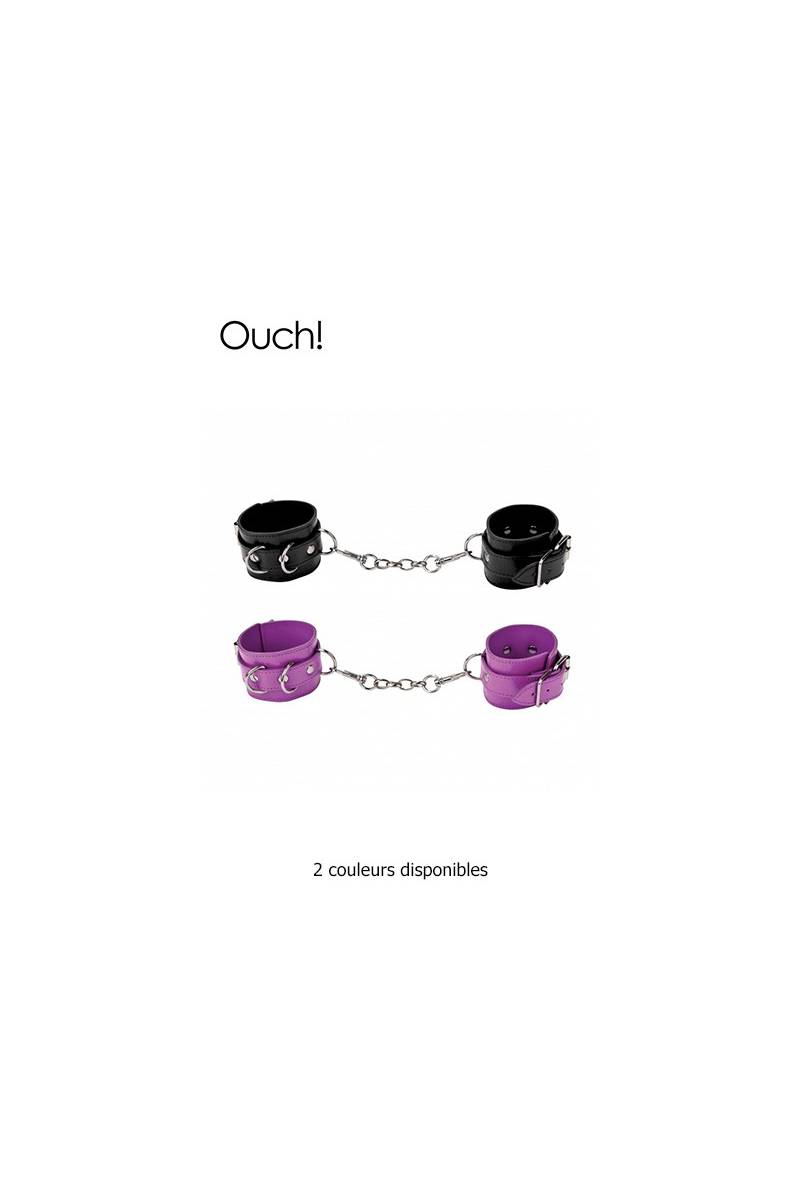 Paire de Menottes ajustables haute qualité, pour poignets ou chevilles, en cuir et métal, proposées par la marque Ouch!