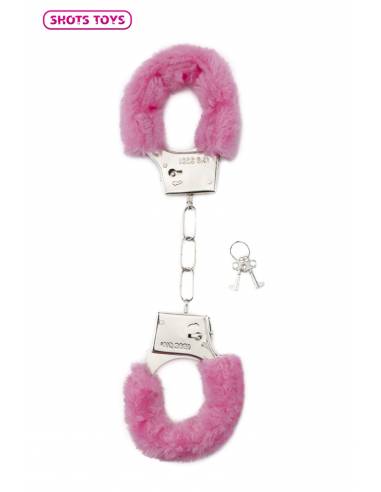 Jouez aux jeux BDSM et attachez votre amant avec ces menottes en métal et fausse fourrure rose de la marque Shots Toys.