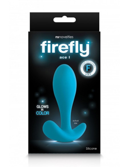 Firefly Ace 1 est un charmant petit plug bleu phosphorescent, qui brille en couleur dans l'obscurité. c'est le plus petit plug anal d'une collection de trois modèles particulièrement amusants et ludiques. Sa forme ergonomique, totalement adaptée au plaisir anal, est idéale pour s'initier au sexe anal en toute sécurité et vous garantit des moments de jouissance intense.