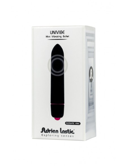 Avec ses 9 cm de long par 1,7 cm de diamètre, le mini vibromasseur Univibe d'Adrien Lastic se range très facilement dans une poche, le sac à main, ou dans une boite à lunettes.