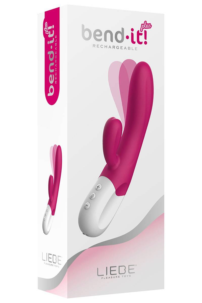 Le vibromasseur à double stimulation Bend It Plus couleur Cerise est fabriqué en silicone très doux semblable à du Liquid Silicone.